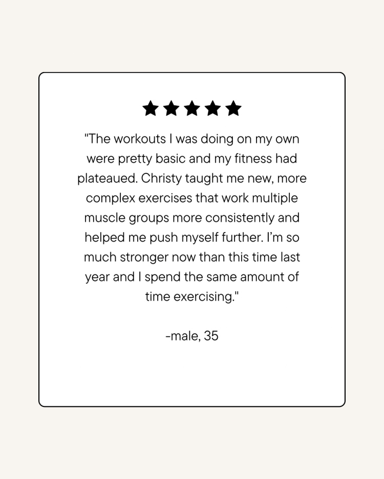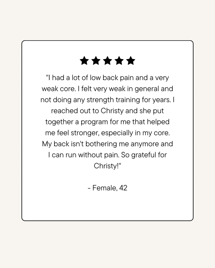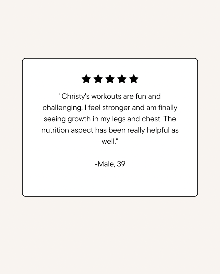 I want this to be fun, sustainable, and effective for you. If you dislike certain exercises, no problem—we’ll adjust! Your program is a collaboration, and I want you to enjoy the process. Plus, I’ll provide exercise form checks as needed to ensure you’re moving safely and effectively