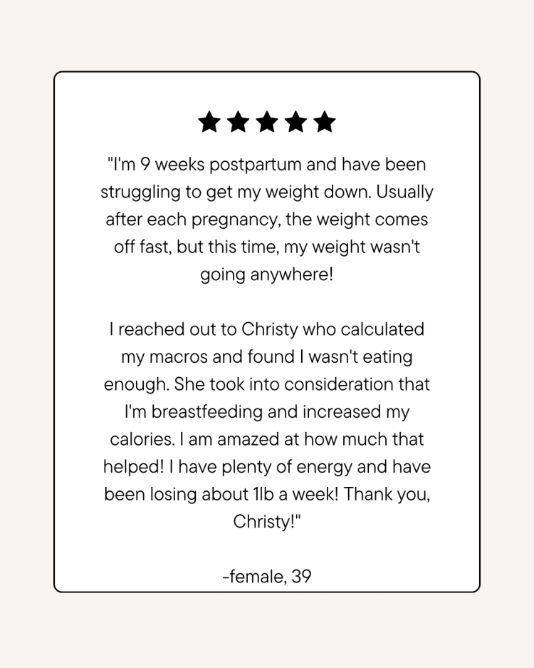 You’ll receive individualized nutrition guidance that fits your goals and lifestyle. My priority is to help you build a healthier relationship with food while making nutrition simple and stress-free. Whether you need meal structure, portion control strategies, or flexible eating habits, I’ll provide a clear, manageable plan.